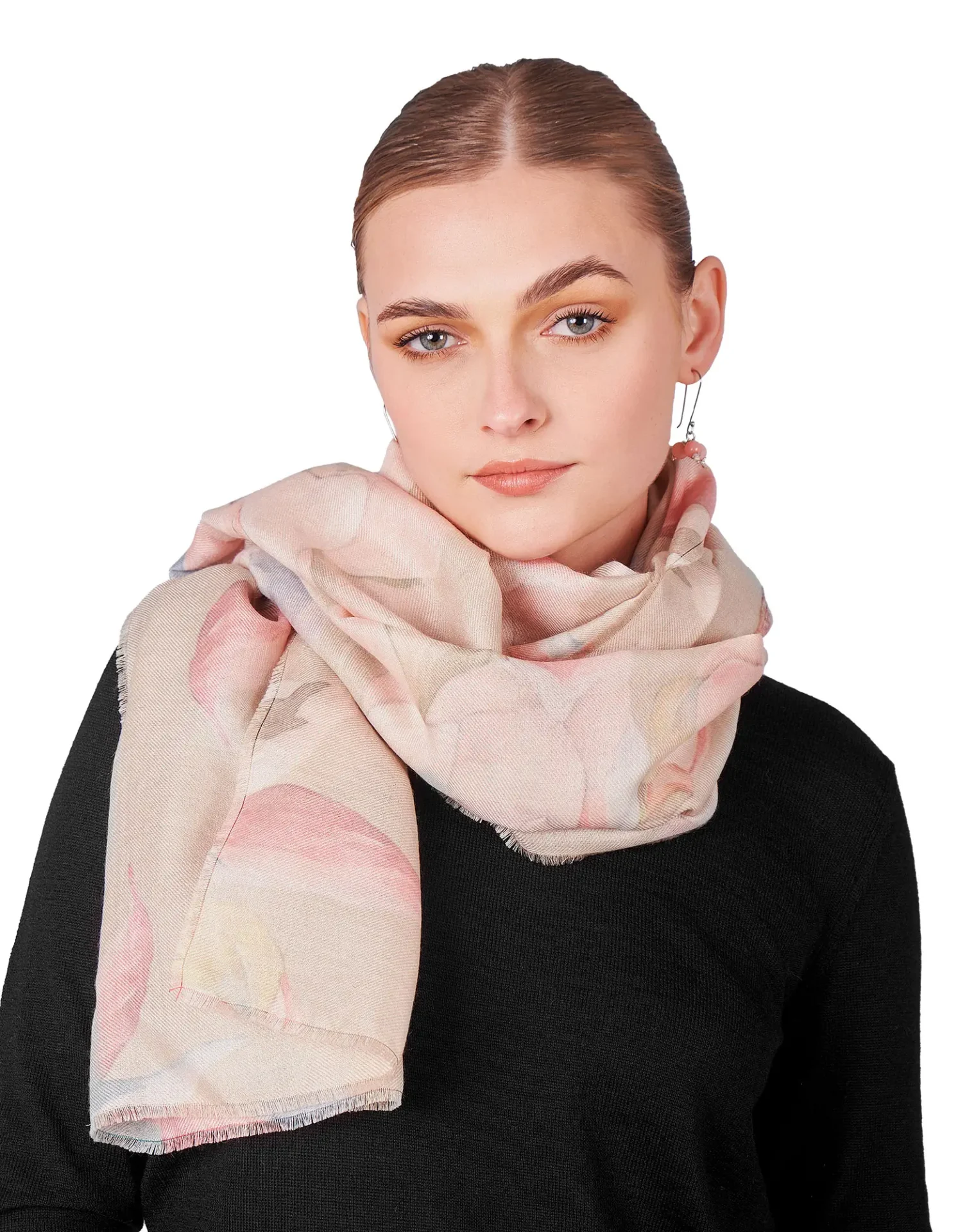 Hermosa estola de Alpaca Royal y Seda con un estampado de flores en colores suaves, con una caída elegante y un brillo inigualable, nuestra estola es el accesorio elegante que necesitas para este invierno. Esta pieza tiene un acabado con finos deshilachados.